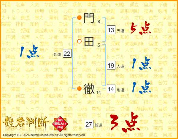 門(8画)田(5画) 徹(14画)