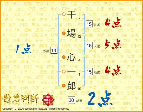 干場心一郎さんの総運は30画の2点!