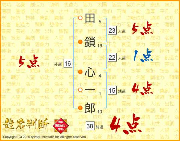 田鎖心一郎さんの総運は38画の4点!