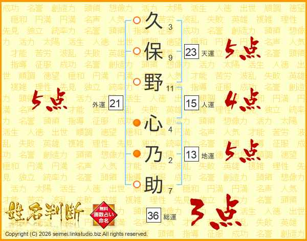 久保野心乃助さんの総運は36画の3点!