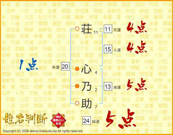 荘心乃助さんの総運は24画の5点!