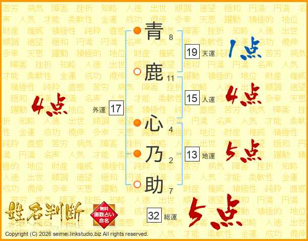 青鹿心乃助さんの総運は32画の5点!