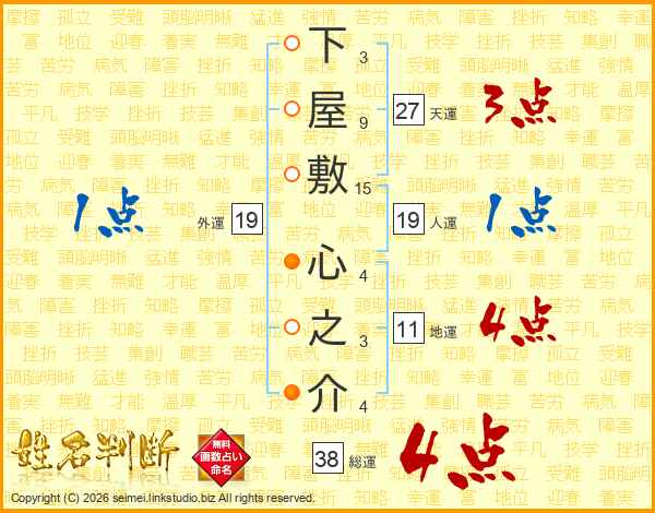 下屋敷心之介さんの総運は38画の4点!