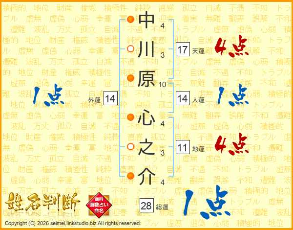 中川原心之介さんの人運は14画の1点!