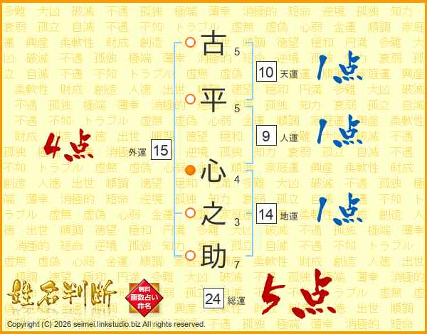 古平心之助さんの総運は24画の5点!