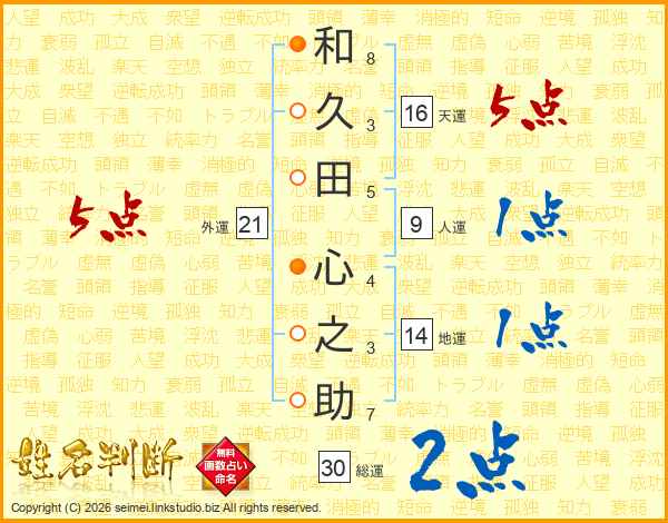 和久田心之助さんの総運は30画の2点!