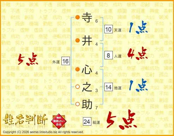 寺井心之助さんの総運は24画の5点!
