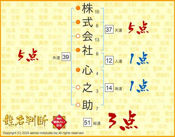 株(10画)式(6画)会(13画)社(8画) 心(4画)之(3画)助(7画)