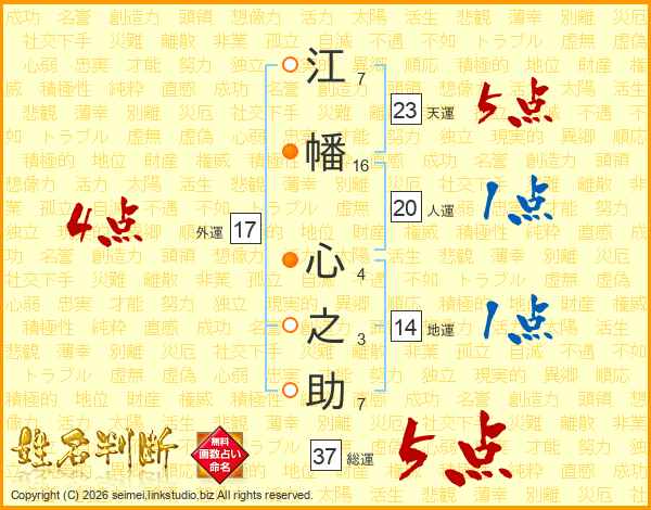 江幡心之助さんの総運は37画の5点!
