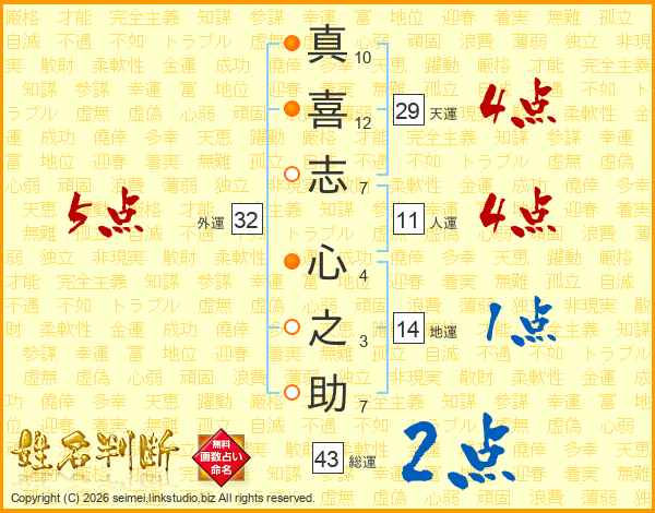 真喜志心之助さんの総運は43画の2点!