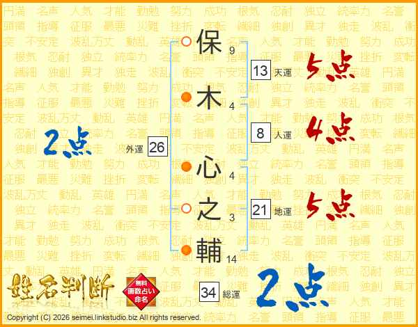 保木心之輔さんの総運は34画の2点!