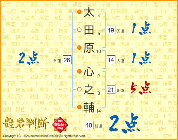 太田原心之輔さんの総運は40画の2点!