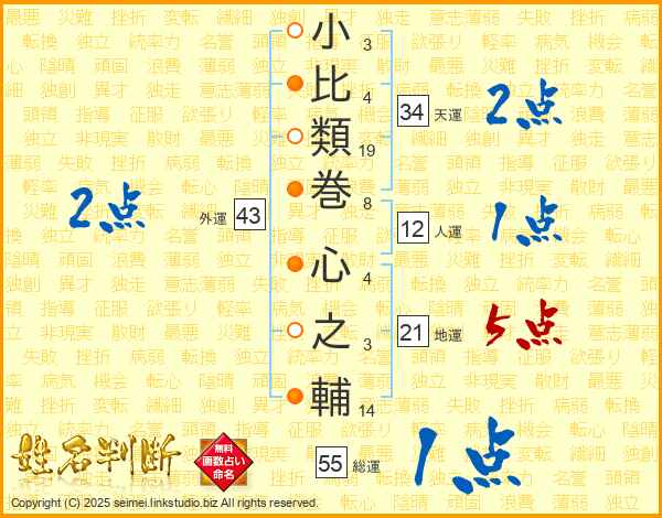 小(3画)比(4画)類(19画)巻(8画) 心(4画)之(3画)輔(14画)