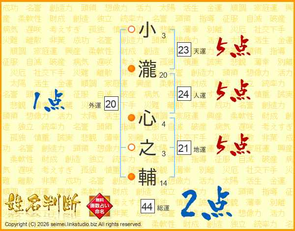 小(3画)瀧(20画) 心(4画)之(3画)輔(14画)