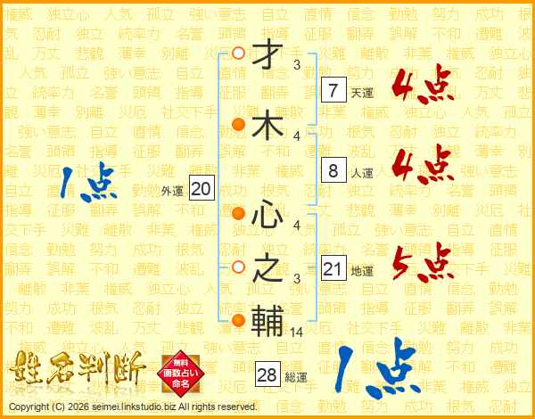 才木心之輔さんの総運は28画の1点!