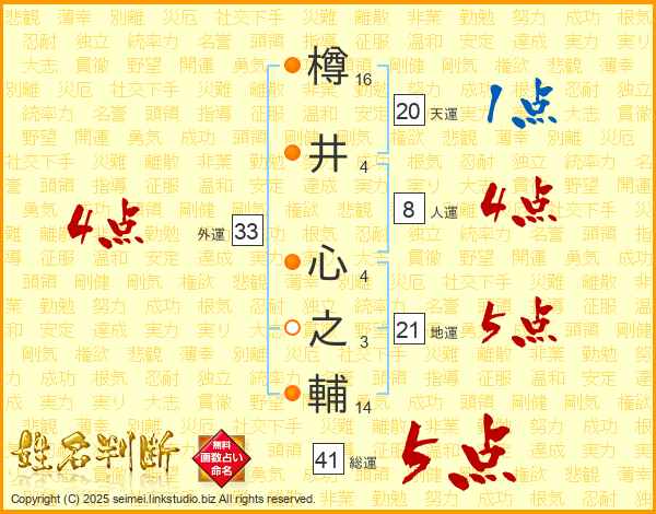 樽(16画)井(4画) 心(4画)之(3画)輔(14画)