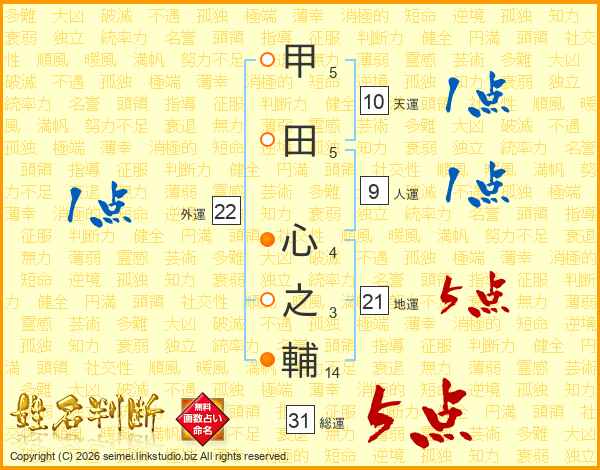 甲(5画)田(5画) 心(4画)之(3画)輔(14画)