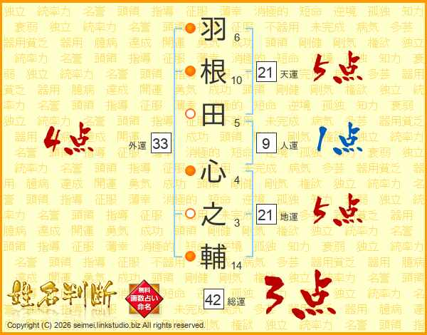 羽根田心之輔さんの外運は33画の4点!