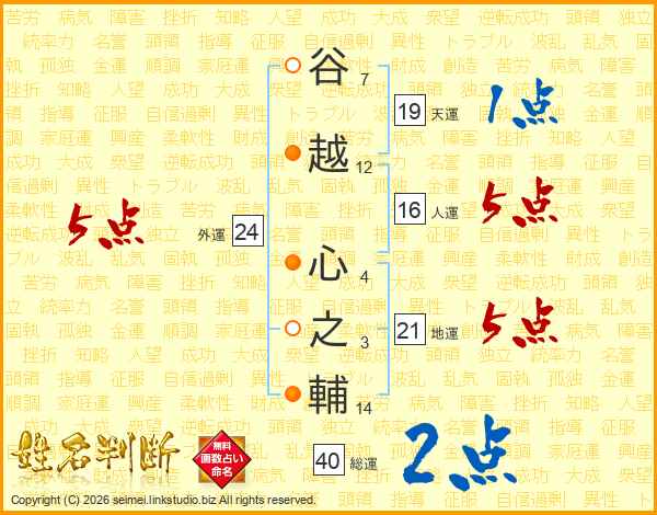 谷越心之輔さんの外運は24画の5点!