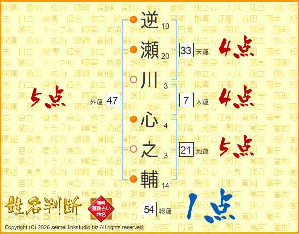 逆瀬川心之輔さんの総運は54画の1点!