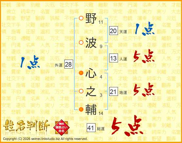 野波心之輔さんの総運は41画の5点!