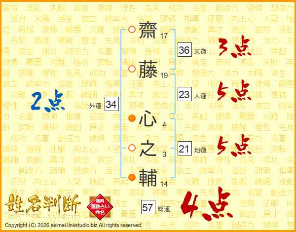 齋藤心之輔さんの総運は57画の4点!