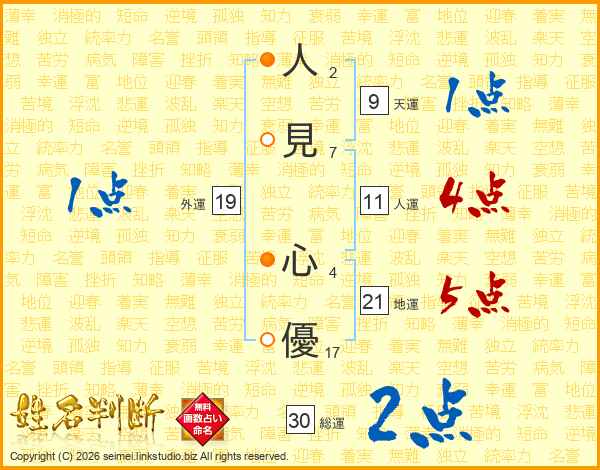 人見心優さんの人運は11画の4点!