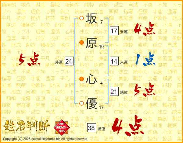 坂原心優さんの天運は17画の4点!