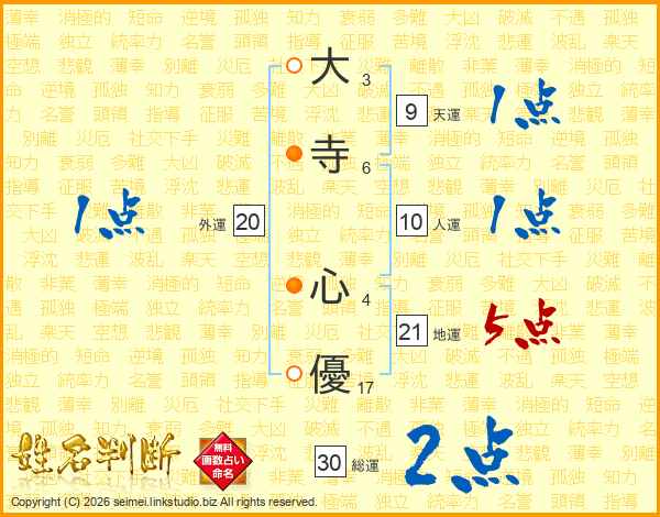 大寺心優さんの総運は30画の2点!