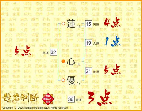 蓮心優さんの外運は32画の5点!