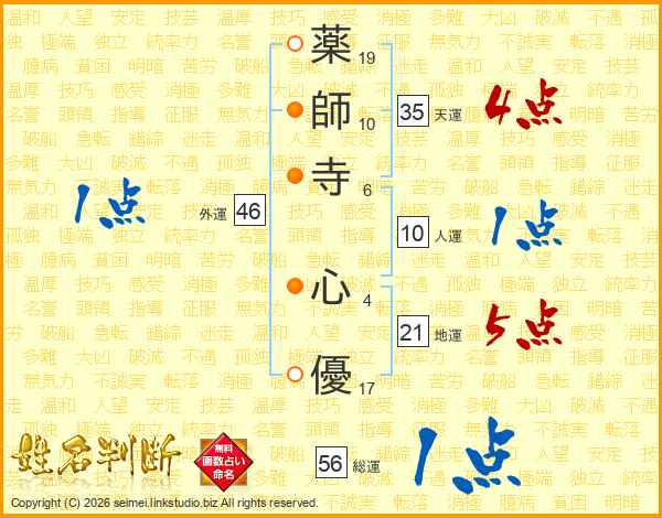 薬師寺心優さんの総運は56画の1点!