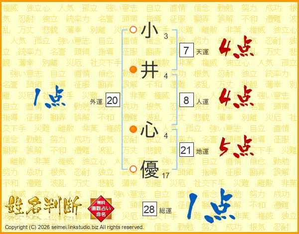 小井心優さんの総運は28画の1点!