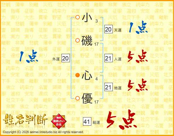 小磯心優さんの総運は41画の5点!