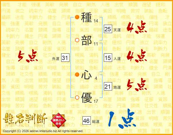 種部心優さんの天運は25画の4点!