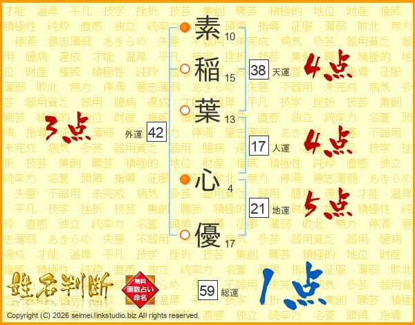 素稲葉心優さんの総運は59画の1点!