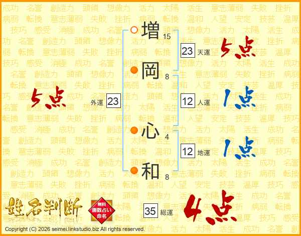 増(15画)岡(8画) 心(4画)和(8画)