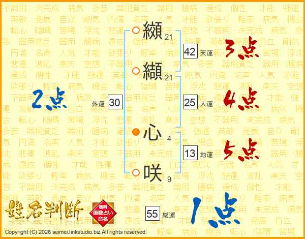 纐纈心咲さんの総運は55画の1点!