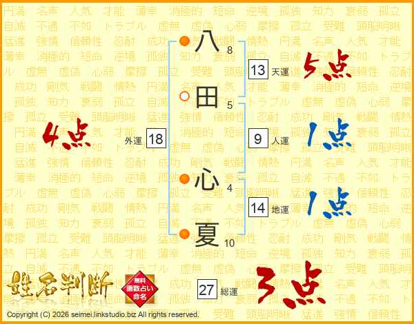 八田心夏さんの天運は13画の5点!