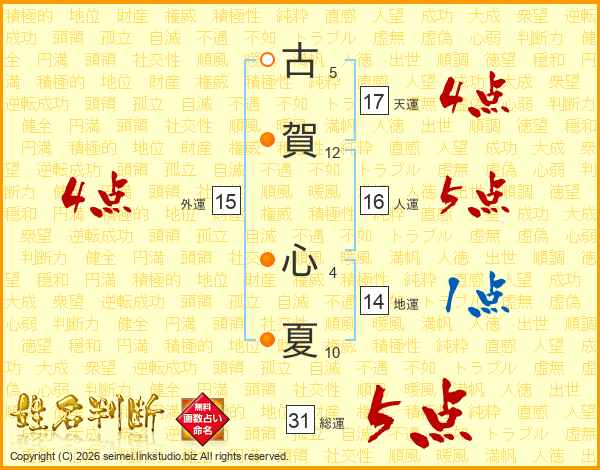 古賀心夏さんの総運は31画の5点!