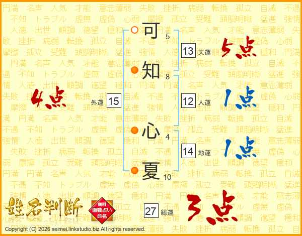 可知心夏さんの外運は15画の4点!