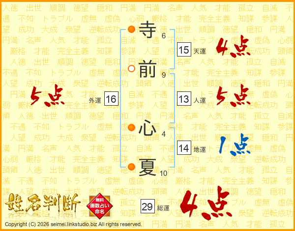 寺前心夏さんの総運は29画の4点!