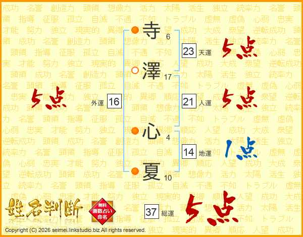 寺澤心夏さんの総運は37画の5点!