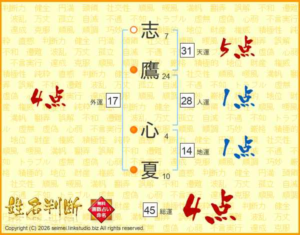志鷹心夏さんの外運は17画の4点!