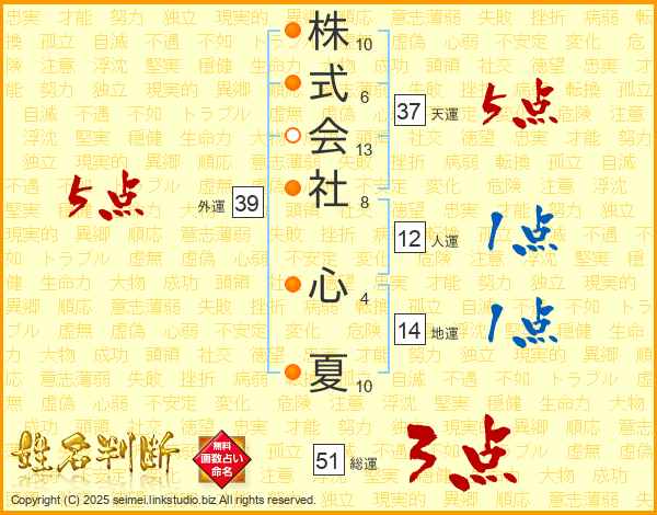 株(10画)式(6画)会(13画)社(8画) 心(4画)夏(10画)