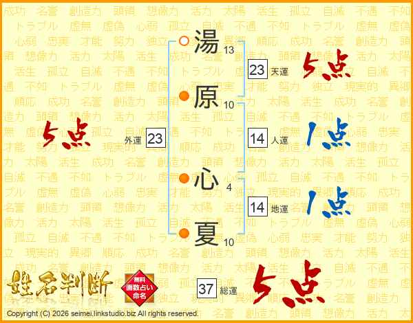 湯原心夏さんの総運は37画の5点!