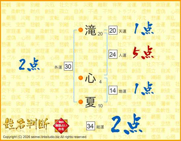 滝心夏さんの総運は34画の2点!