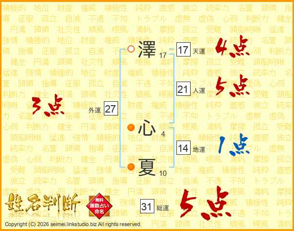 澤(17画) 心(4画)夏(10画)