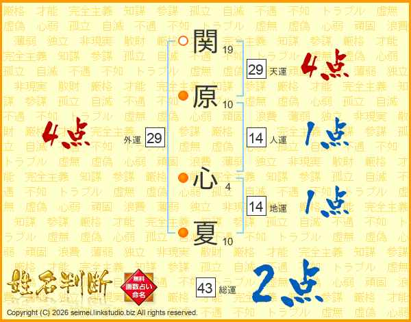 関原心夏さんの天運は29画の4点!