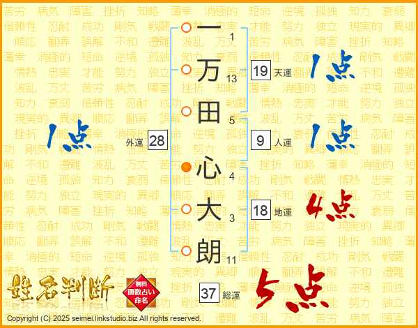 一万田心大朗さんの総運は37画の5点!