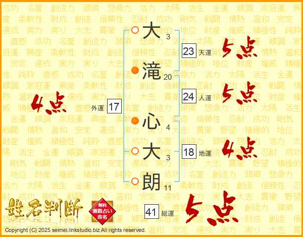 大滝心大朗さんの総運は41画の5点!